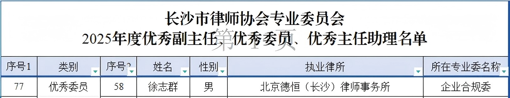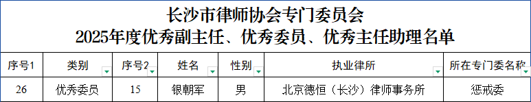 德恒荣誉丨再获殊荣!我所银朝军、徐志群荣获长沙市律师协会2025年度优秀委员
