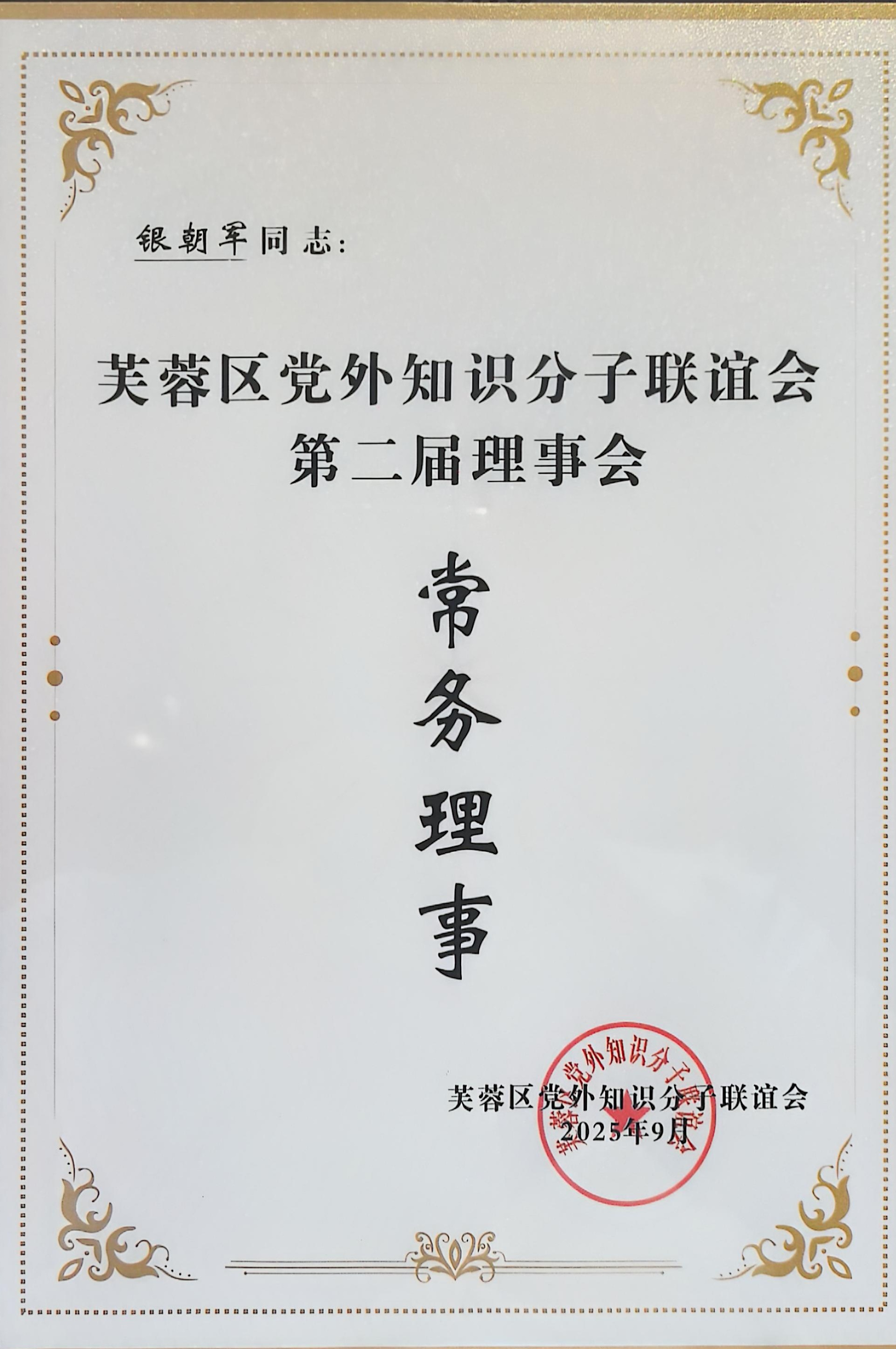 区知联会是由芙蓉区党外知识分子为主体组成的具有统战性、联谊性、非营利性的社会团体,旨在团结引领全区广大党外知识分子,深入学习贯彻习近平新时代中国特色社会主义思想,围绕区域发展大局建言献策、服务社会。本次会议审议通过了第二届理事会会长、副会长、秘书长及常务理事候选人名单,银朝军律师作为12名常务理事之一,凭借其专业能力和社会贡献成功当选。