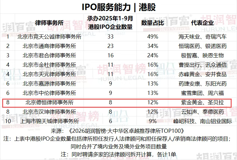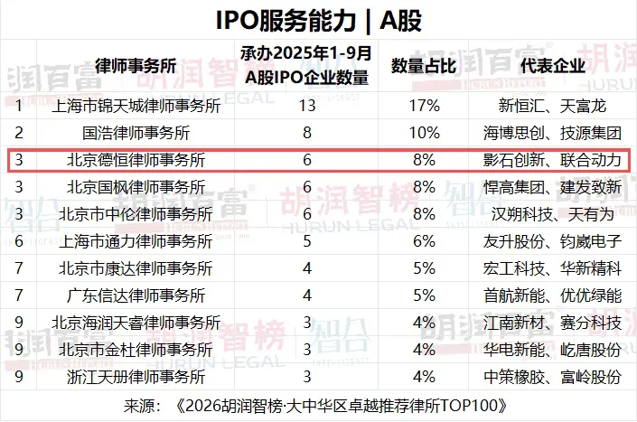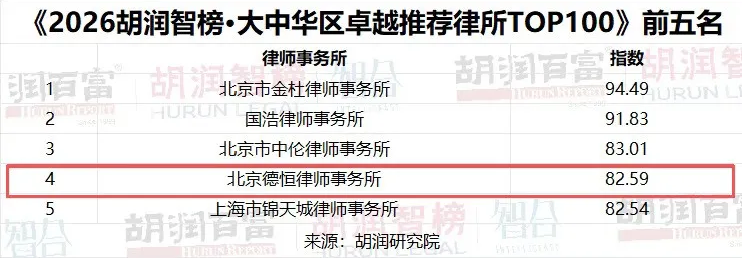 德恒荣誉 | 德恒荣登《2026胡润智榜・大中华区卓越推荐律所TOP100》榜单